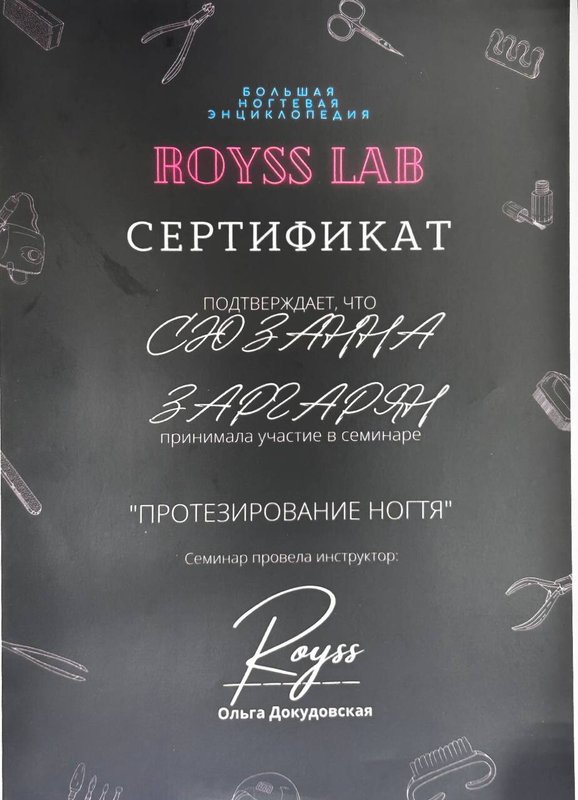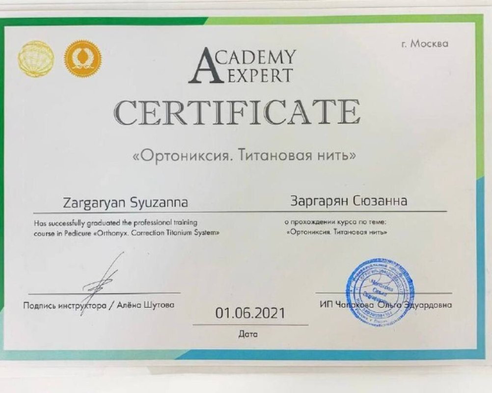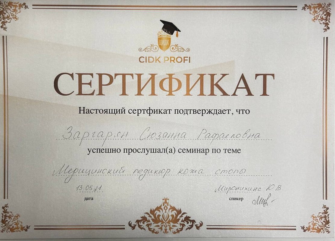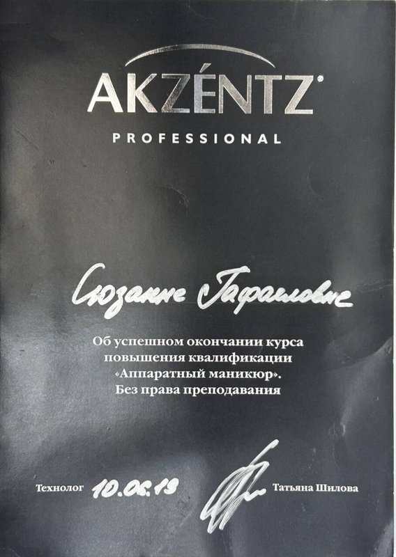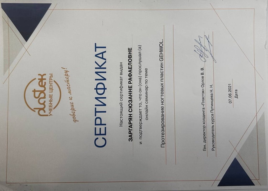Мне нравится специалист Рузанна, ее отношение, подход к детям и качественное выполнение работы. Рабочее место мастера в хорошем состоянии.